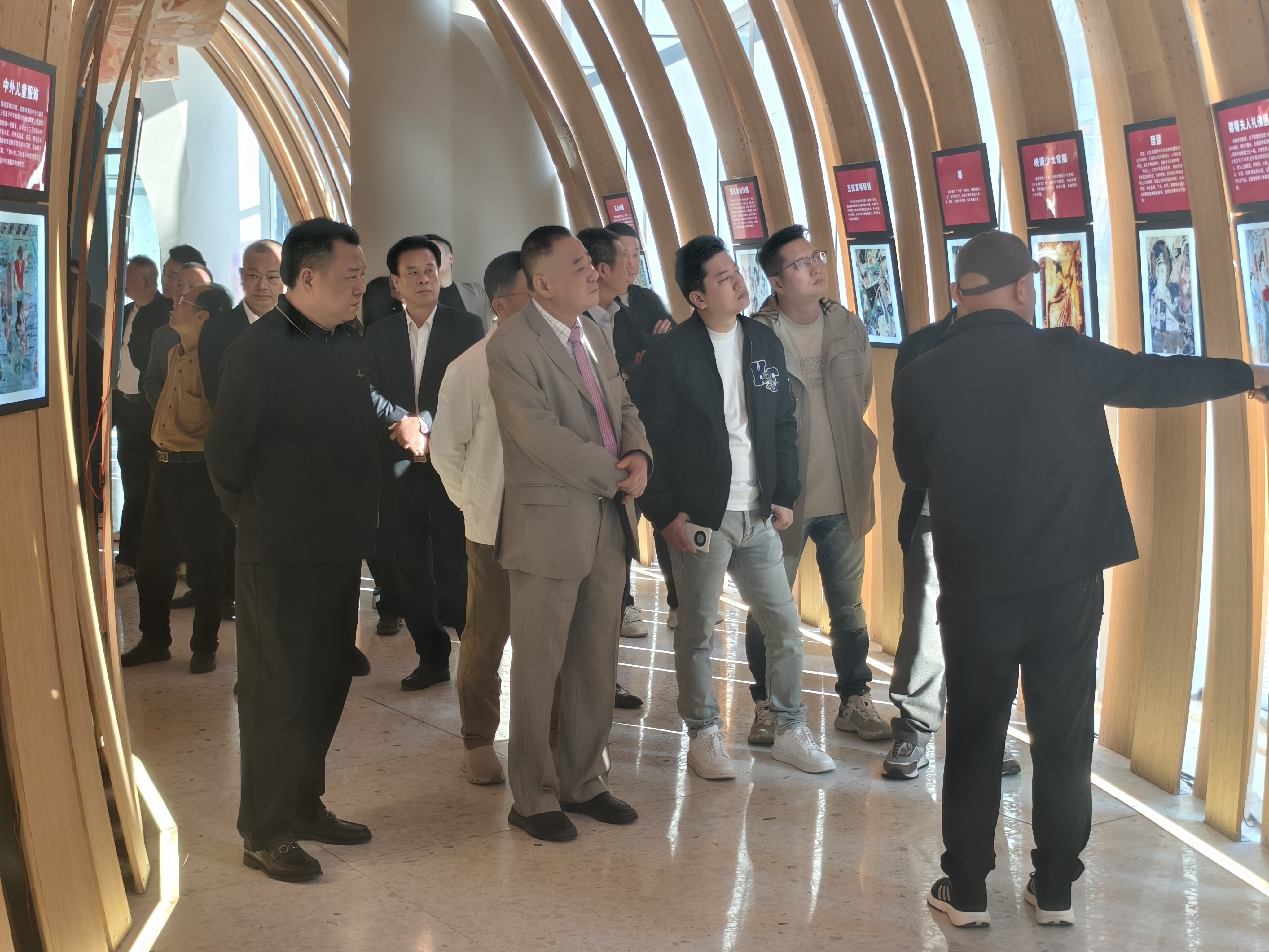 在辜典虹董事长陪同下,首先参观了位于园区内的秋谷美术馆;秋谷美术馆是惠州读创文化园的重要组成部分,自2020年10月开放以来,已举办多场主题展览,涵盖艺术交流、文化传承与乡村振兴等议题,本次参观的是敦煌镜像文化艺术展出,讲解员对每一幅镜像背景的详细解读,让大家对敦煌文化艺术中佛教文化与中国传统文化交融有深刻的了解。