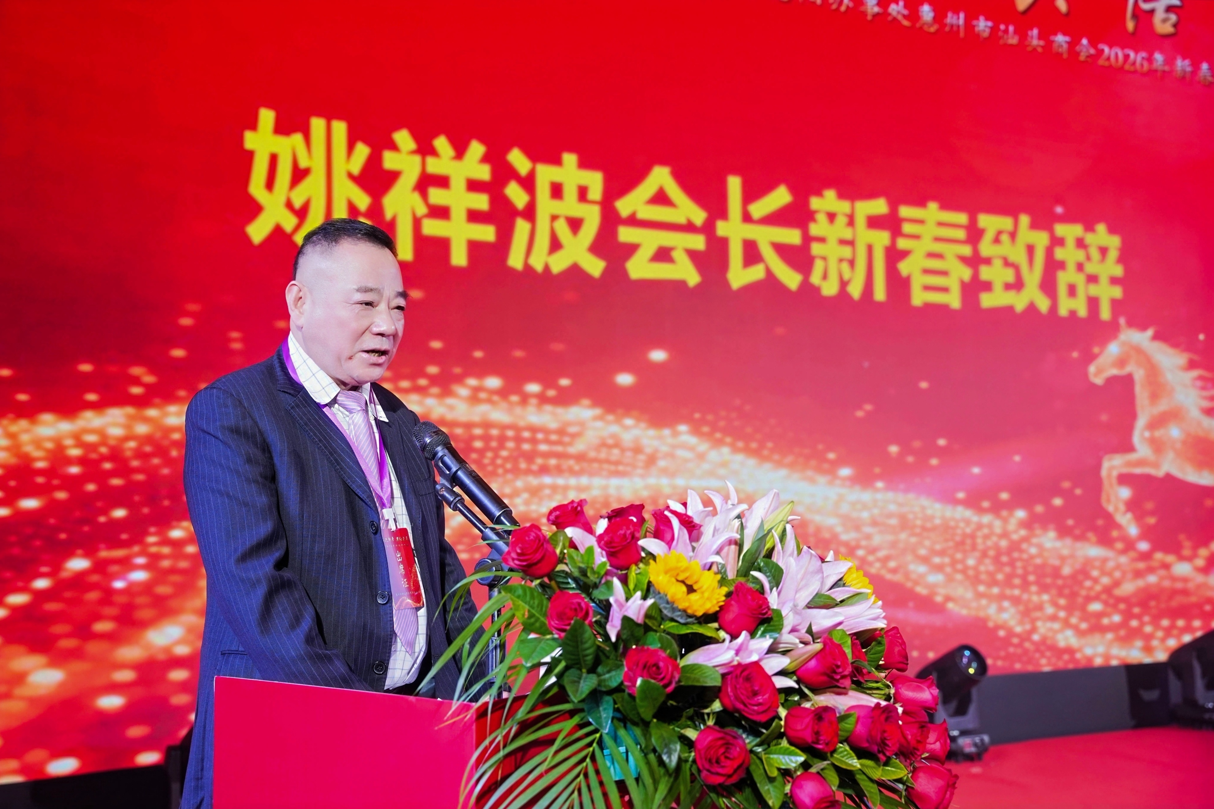 展望2026年,他强调,商会将继续发挥桥梁纽带作用,进一步优化服务体系,助力会员企业把握机遇、应对挑战;积极推动会员企业间的资源整合与产业协作,探索新质生产力发展路径;将持续引导会员履行社会责任,回馈桑梓,为家乡及惠州的经济社会高质量发展贡献更多潮商力量。他号召全体会员继续携手并肩,弘扬“爱拼才会赢”的奋斗精神,共同书写潮商事业的新辉煌。