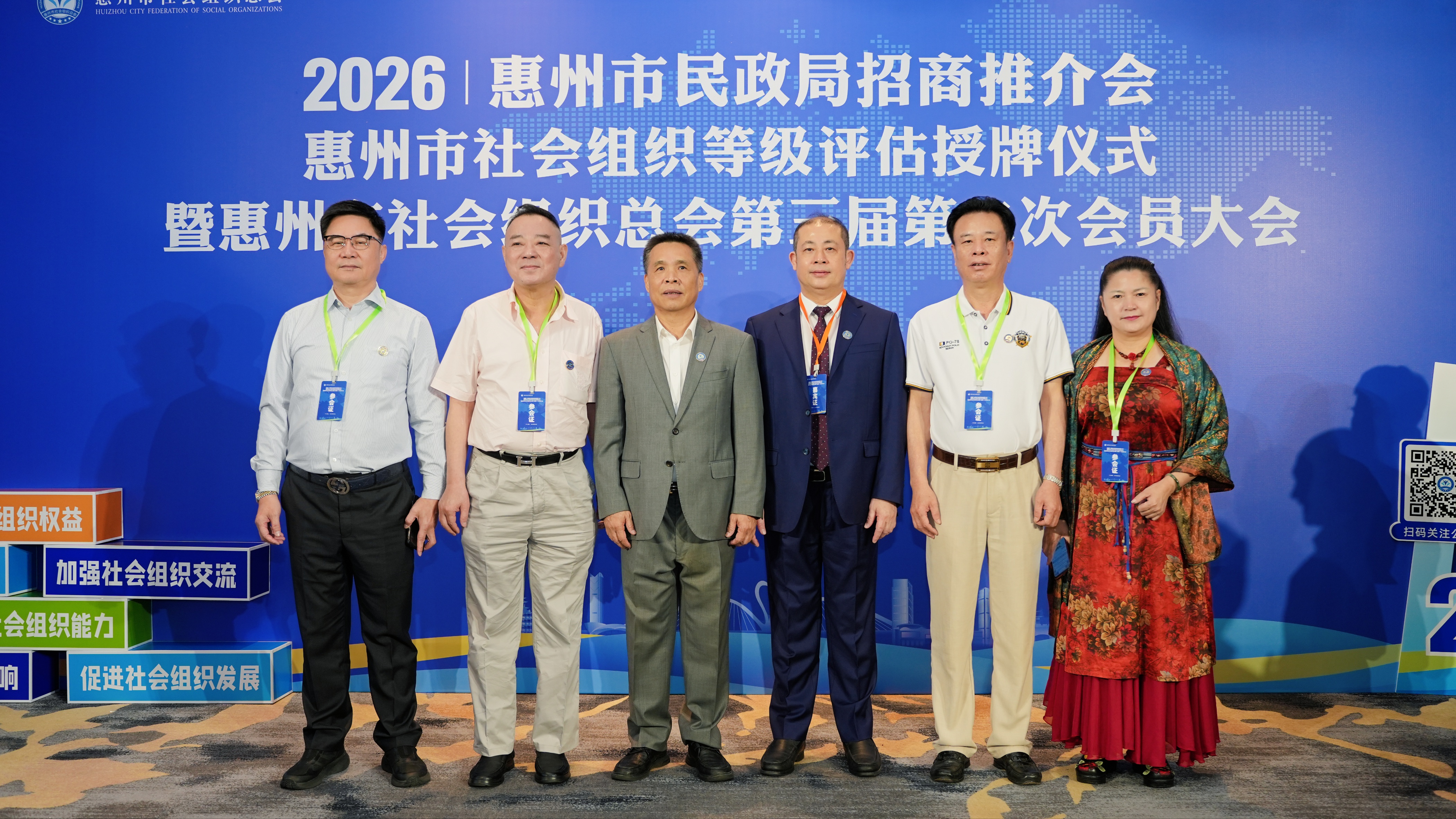2026年3月29日下午,惠州市民政局招商推介会、惠州市社会组织等级评估授牌仪式暨惠州市社会组织总会第三届第二次会员大会,在惠州富力万丽酒店隆重举行。惠州市社会组织总会各会员单位代表、部分外地社会组织总会代表、市委社工部、市民政局等政府有关部门领导欢聚一堂,共商行业发展、共话使命担当、共绘高质量发展蓝图。本会会长姚祥波、常务副会长兼秘书长陈创忠出席以上会议。