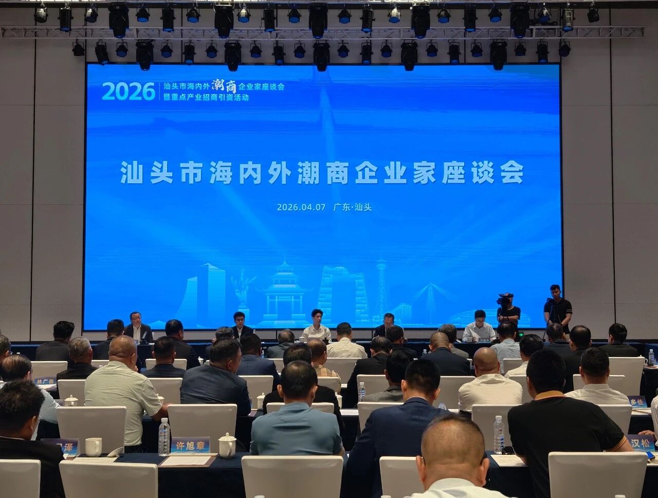 为深入贯彻党的二十大和二十届历次全会精神,认真落实中央及省委的部署要求,进一步发挥侨乡优势,凝聚海内外潮商力量,助力汕头高质量发展。2026年4月7日下午,汕头市委、市政府在汕头白天鹅宾馆举办2026年汕头市海内外潮商企业家代表座谈会暨重点产业招商引资活动,海内外潮属社团会长及潮商企业家代表欢聚一堂,共商潮是,共谋发展;汕头市委书记温湛滨出席会议并讲话。市人大常委会主任项天保,市政协主席邱奕辉出席会议。市委常委,副市长许宏华介绍汕头经济社会发展情况。市委常委、统战部部长蔡永明主持会议。本会会长姚祥波应邀出席以上座谈会。