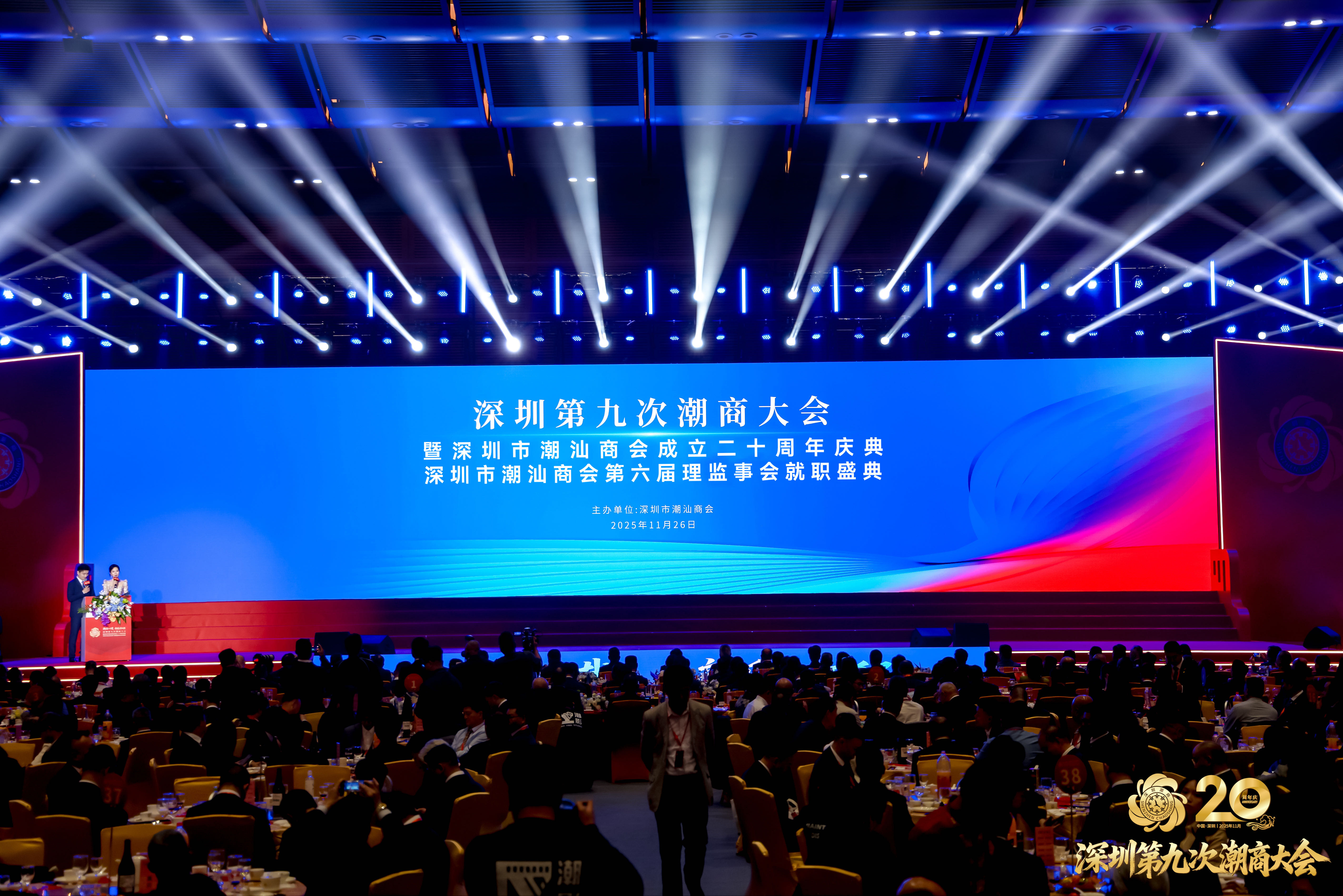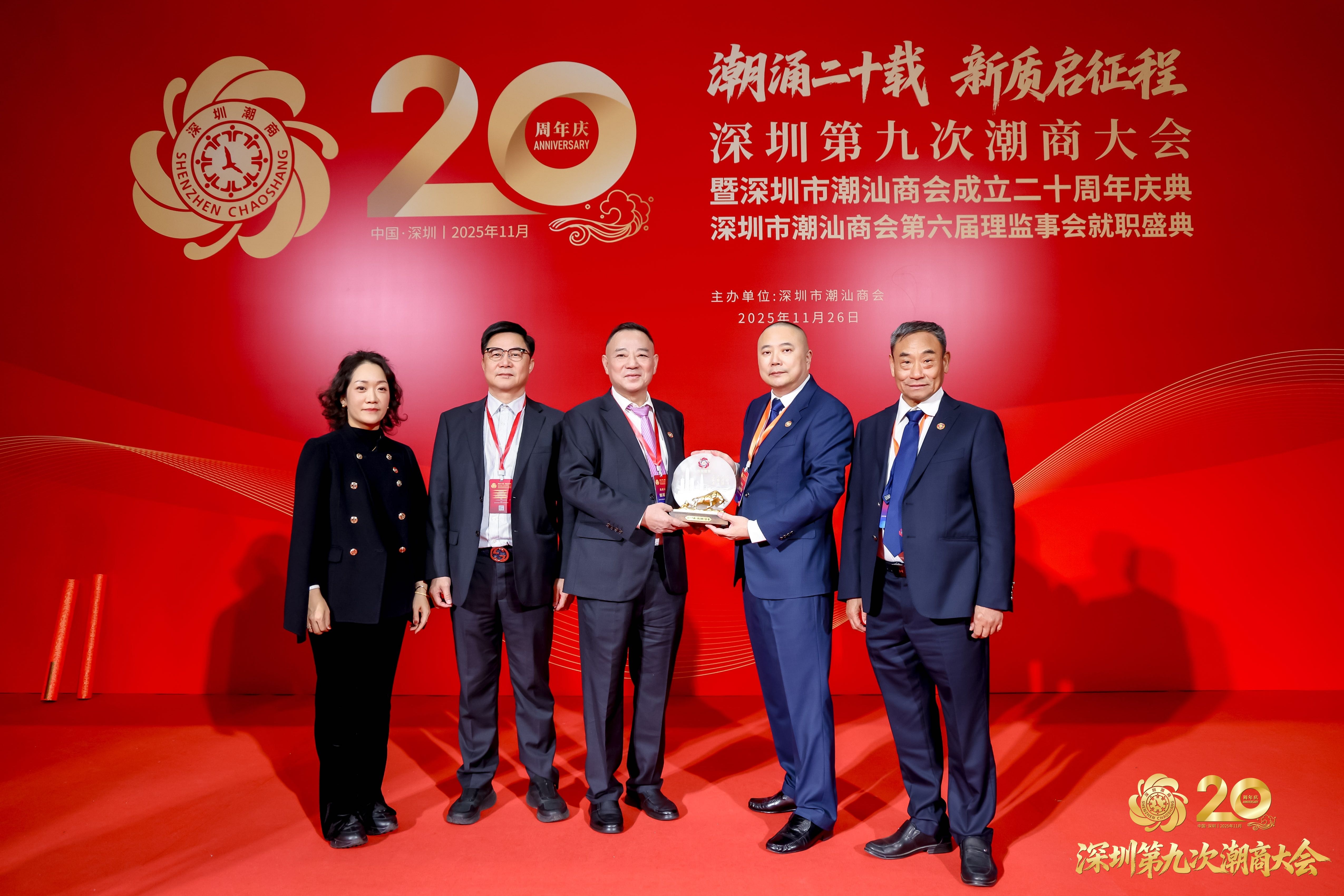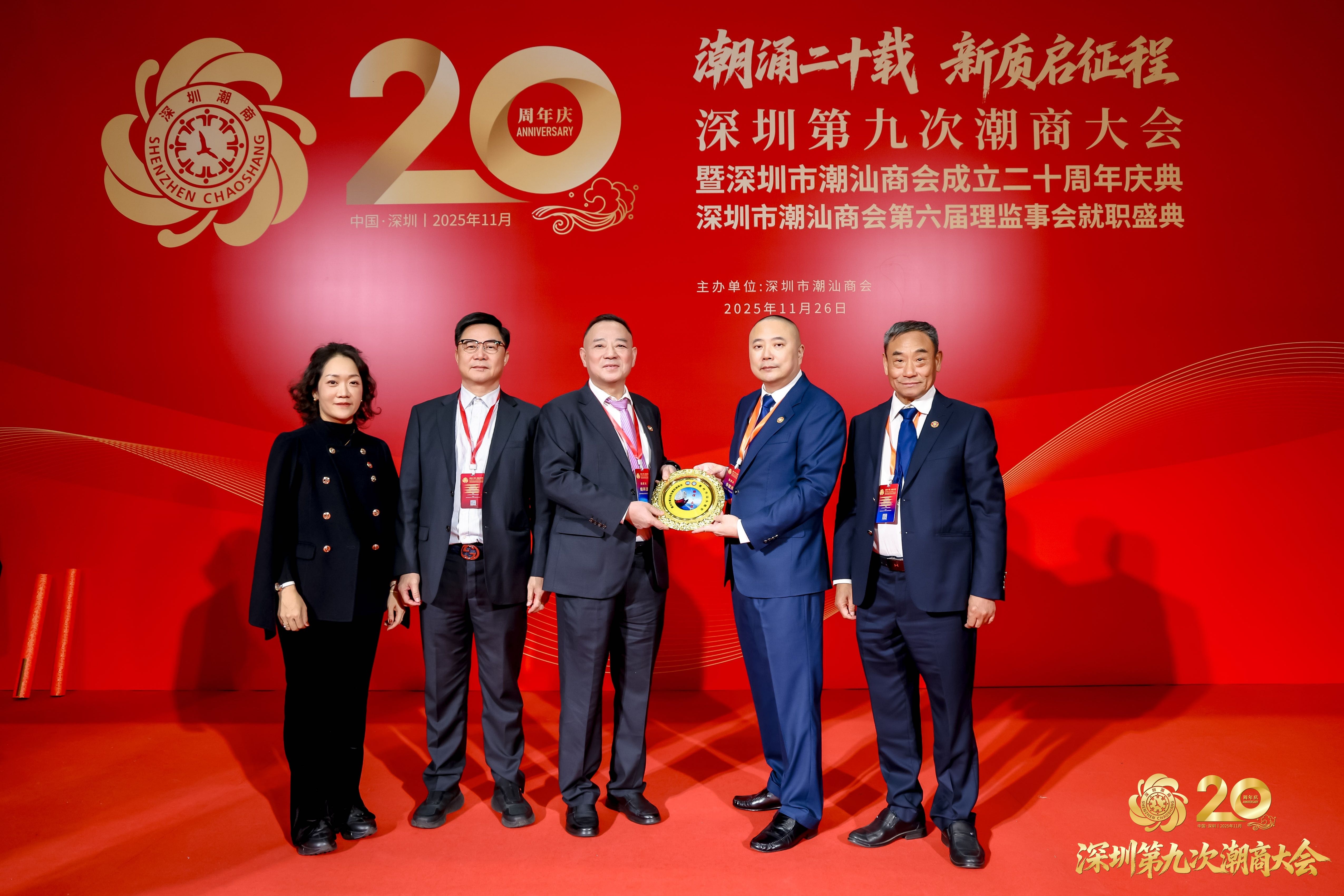 2025年11月26日,由深圳市潮汕商会主办的深圳第九次潮商大会暨深圳市潮汕商会成立二十周年庆典、第六届理监事会就职典礼在深圳福田会展中心隆重举行。本次盛会以"潮涌二十载,新质启征程"为主题,充分彰显了潮商群体立足新时代、把握新机遇、谱写新篇章的坚定决心。