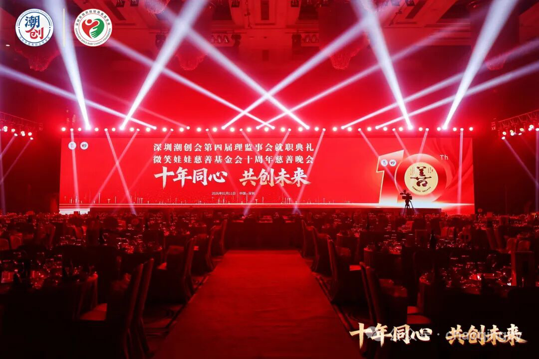 2026 年 1 月 11 日,深圳潮创会第四届理监事会就职典礼暨微笑慈善基金会成立十周年慈善晚会,在深圳大中华喜来登酒店隆重举办,来自相关部门领导、企业家代表、海内外潮属社团会长、潮汕籍乡贤及爱心人士、战略合作单位及相关机构代表等共 700 多位嘉宾出席盛典。深圳潮创会微笑基金会共同主席、本会会长姚祥波率团,常务副会长陈创忠(兼秘书长)、陈耿在、庄耿丹,理事张婉玲(兼办公室副主任)陪同出席,并与该会互赠礼品;本会名誉会长黄林周也应邀出席。